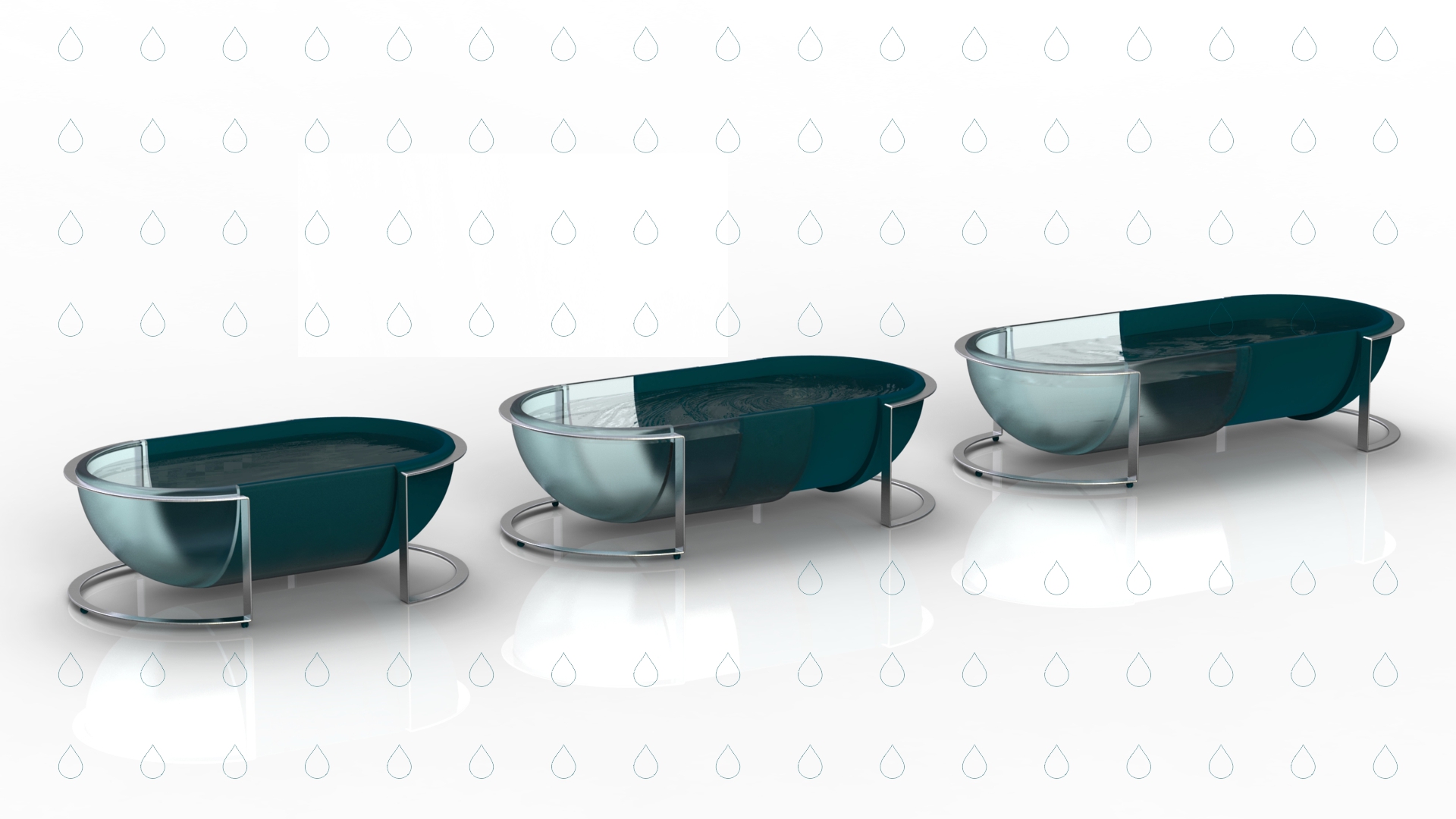 Thus, better water management is required both in the industrial contexts, but especially in the domestic environment. The latest reports by the Environmental Protection Agency (EPA) estimate that an average-sized bathtub uses about 270 liters compared to a 5-minute shower, which would require about 95 liters. Seen as an object for “guilty pleasures”, the bathtub represents a rigid, tabu product, unexplored from the point of view of water consumption efficiency.